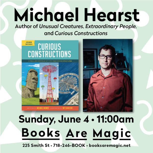 I thought it was going to be interpretive dance representations of the unusual creatures, but Michael says it’s ” a nerdy-fun musical PowerPoint presentation, which will include footage of a tree fort community in Costa Rica, the world’s largest skateboard ramp, and a giant, fire-breathing, mechanical octopus.” Who are you going to believe? Here.